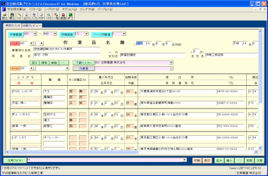 | ■「建設業法・雇用改善法等に基づく届出書」、「施工体制台帳」ではA3サイズはもちろんですが、元請側と複数存在する下請け側をA4サイズで出力できます。下請け会社の入力時は元請値または前ページの下請け値と内容が酷似している場合、参照値をセットできます。 ■元号はアルファベット入力を漢字に自動変換します。また、弊社独自の元号テーブルの活用で平成に変わる年号が施行された場合でもユーザー側で迅速対応できます。(変換しない設定も可能) ■作業員名簿の経験年数及び年齢、新規入場時等教育実施報告書の実施時間等は自動計算します。 ■移動式クレーン・車両系建設機械等使用届、工事・通勤用車両届けの保険情報は複数台一括加入保険を考慮し前ページ値をセットできます。 ■複数ページを出力可能な全ての書類ではページの複写、削除、挿入処理が可能です。よって、一旦入力したデータ順の変更等も簡単に行えます。 |