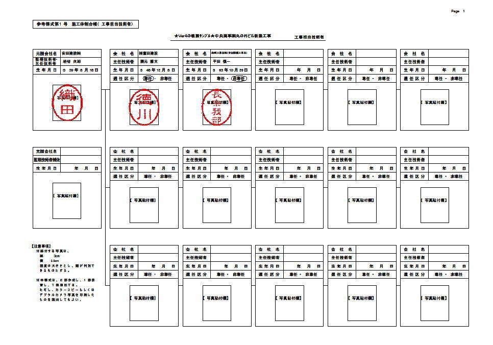 | 全建統一様式・改訂5版の変更書類から抜粋して紹介しています。 PDFで出力したものを掲載しています。実際の印刷物はメリハリがあり、遥かにきれいな仕上がりです。 全建統一様式で印鑑欄がある書類に関しては電子印鑑(画像)の出力を可能にしました。 |
