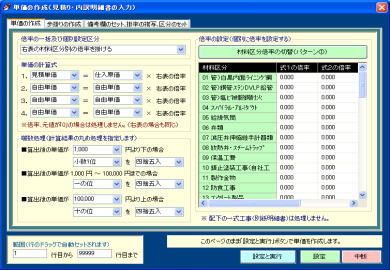 | 単価、歩掛り、複合単価の作成等は専用画面で楽々対処。 | |