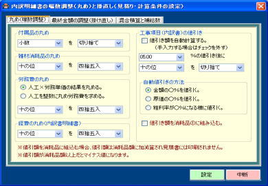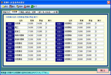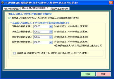 | 付属品、消耗品、労務費、経費、値引別に設定できます。 | |